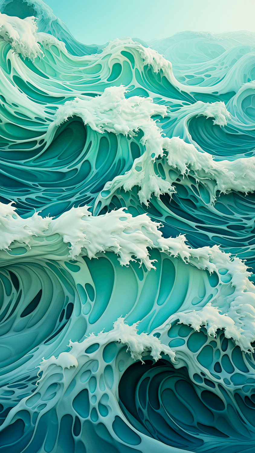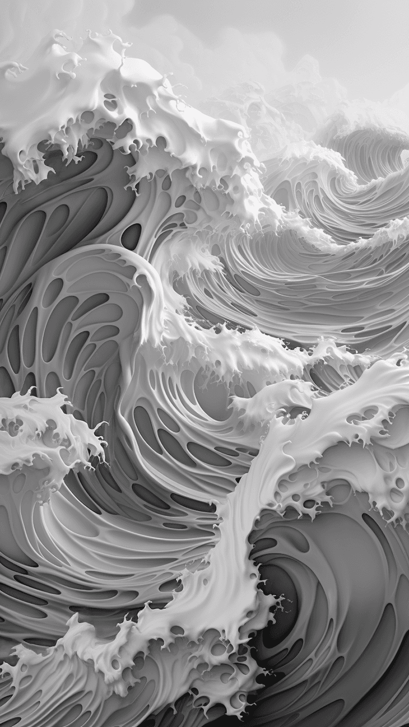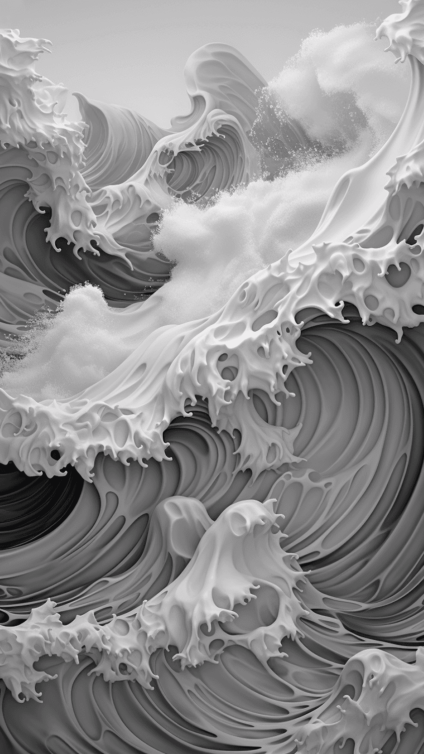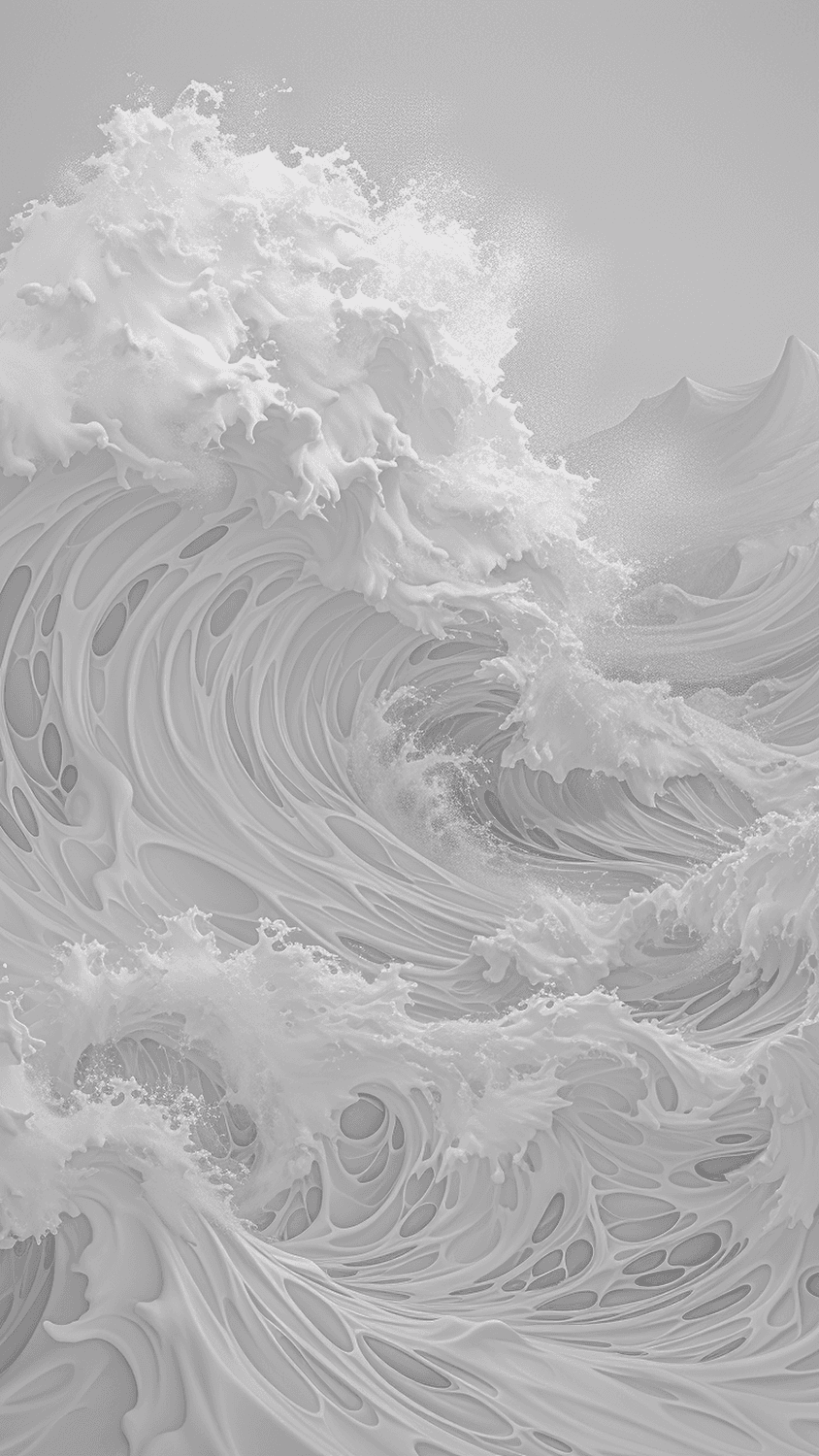 The idea for the series arose during a late night exploration while tinkering with various prompts. Geometric waves were the focus. However, a spontaneous output appeared that was naturally depicted and composed.