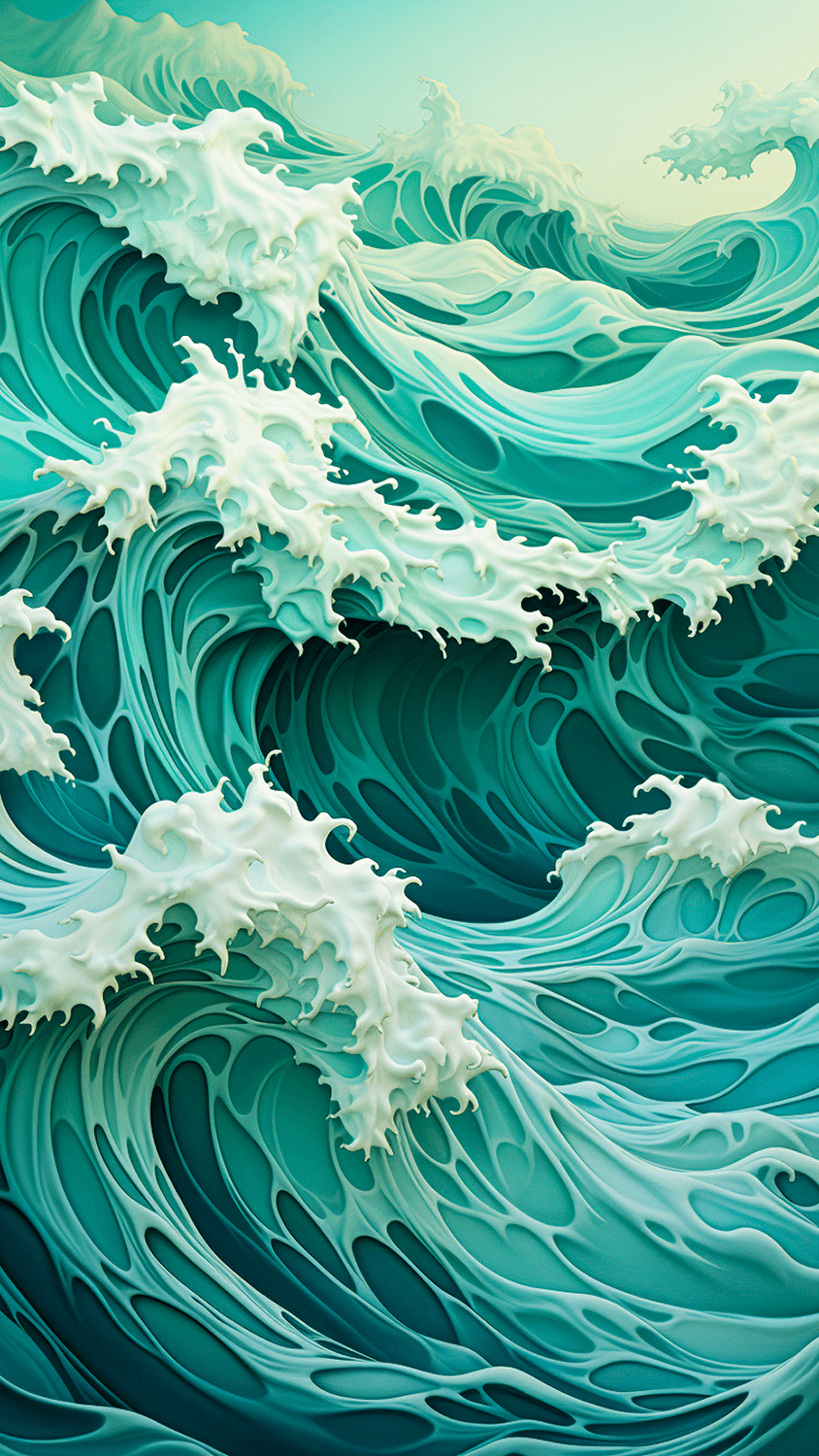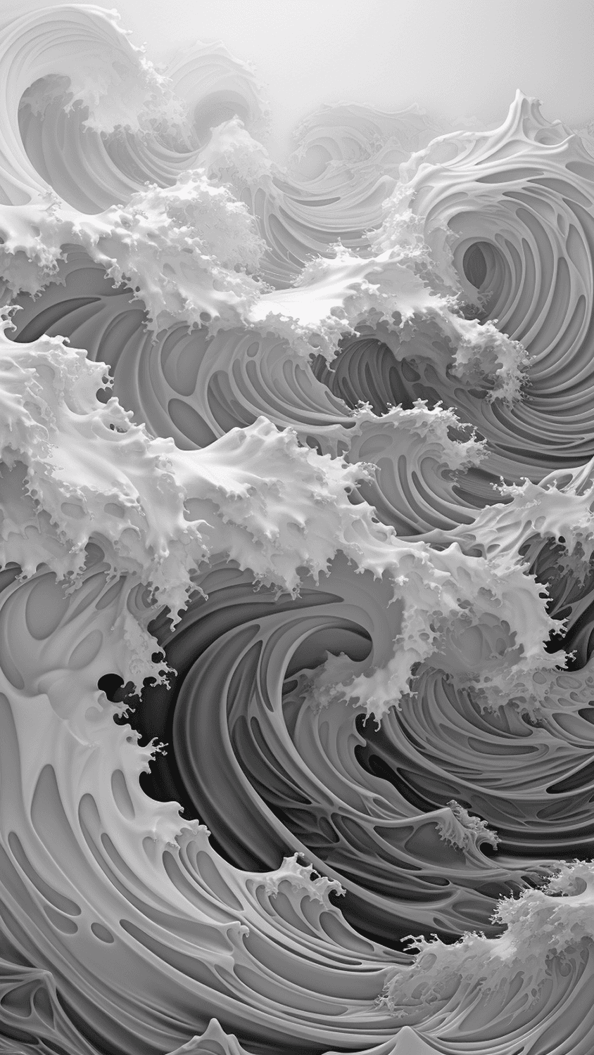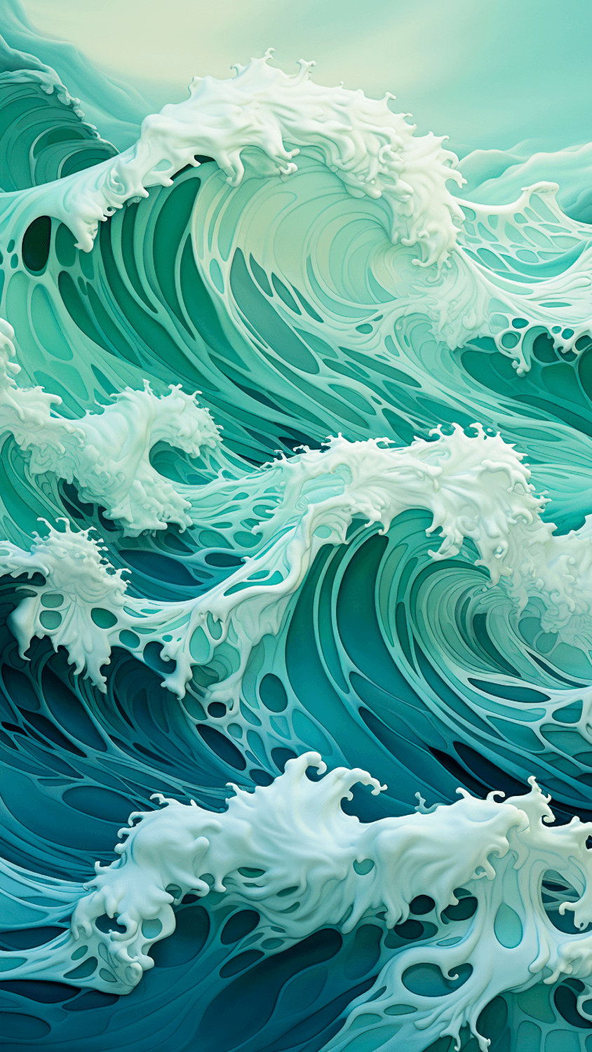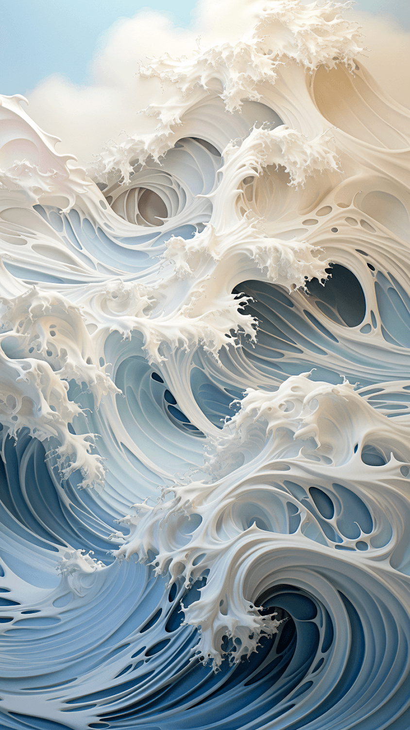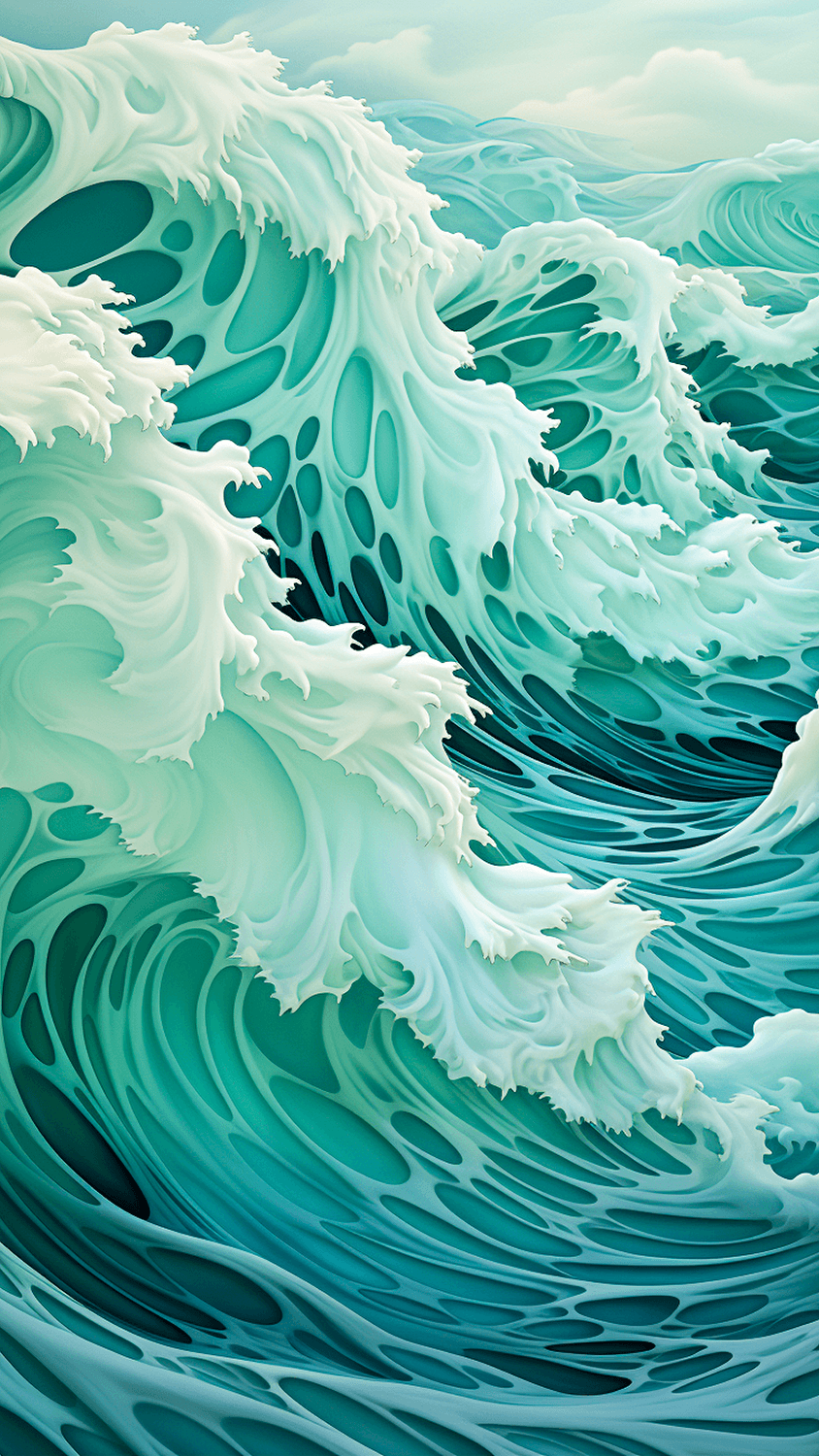 The idea for the series arose during a late night exploration while tinkering with various prompts. Geometric waves were the focus. However, a spontaneous output appeared that was naturally depicted and composed.