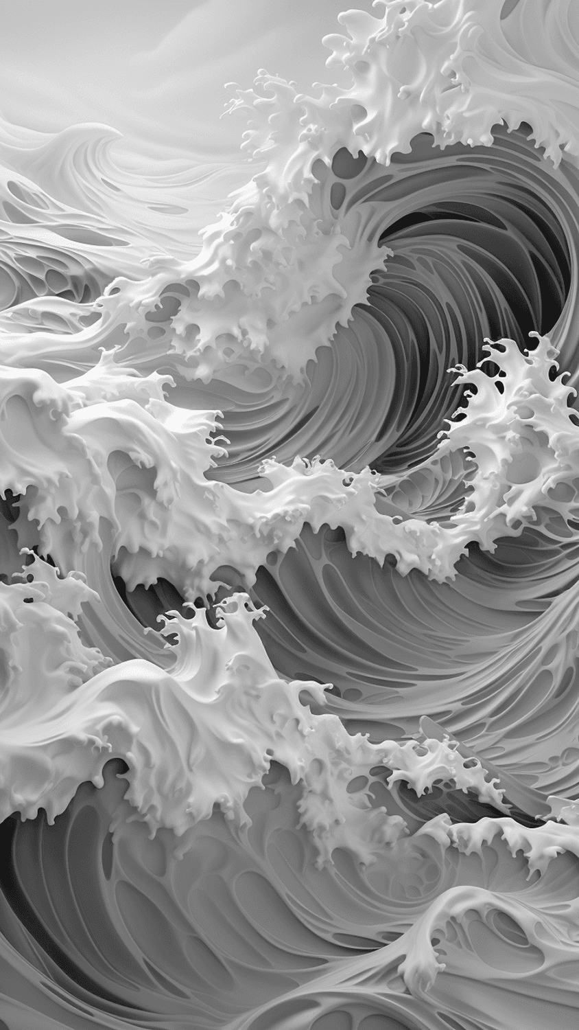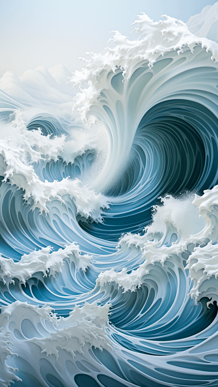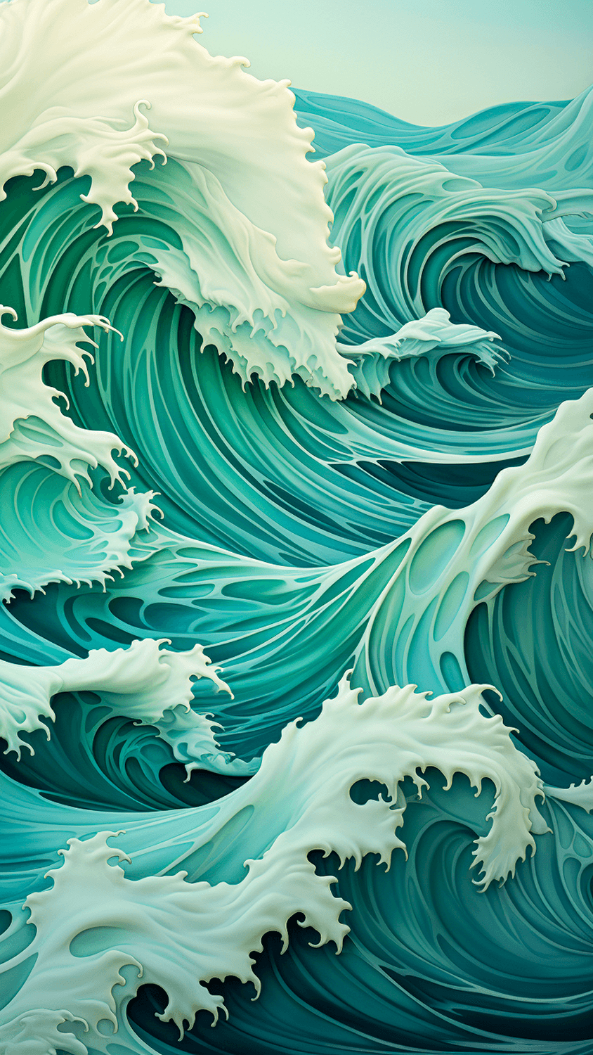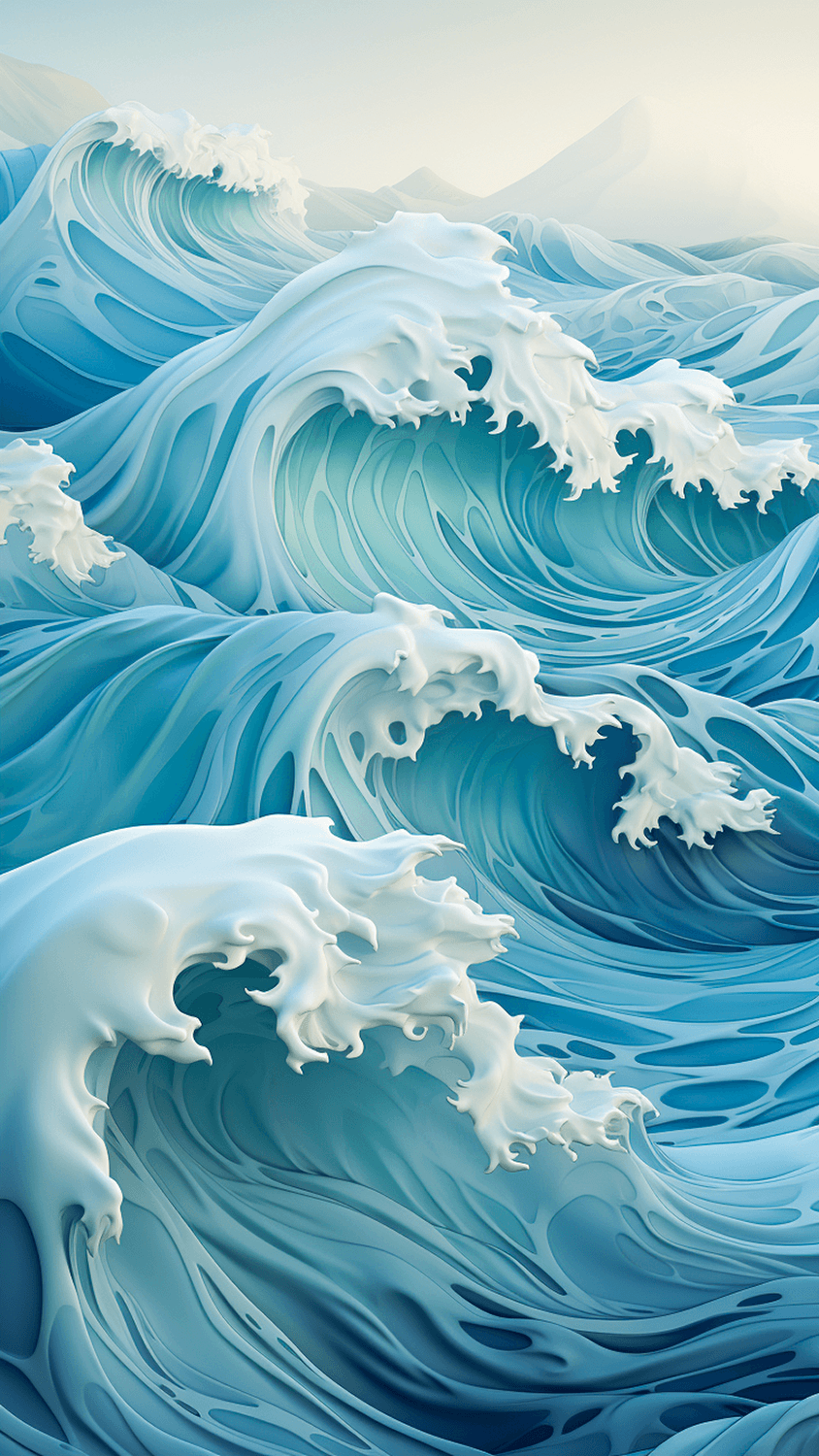 The idea for the series arose during a late night exploration while tinkering with various prompts. Geometric waves were the focus. However, a spontaneous output appeared that was naturally depicted and composed.