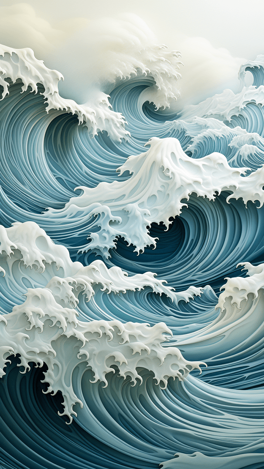 From this spontaneous output, with inspiration from Hokusai, NAMI was born and constructed over a three month period using generative AI image and video tools.